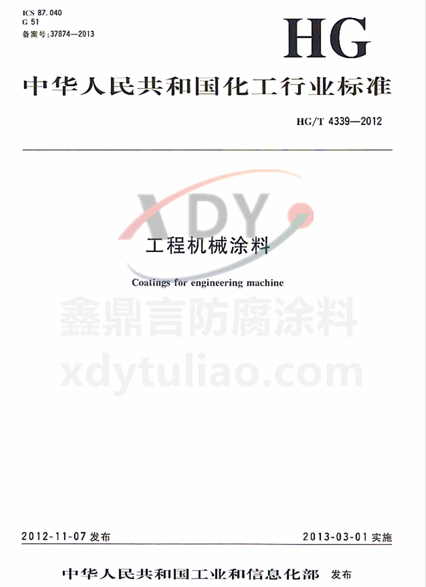 HG/T 4339-2012工程機械涂料標準是小編摘自HG/T 4339-2012《工程機械涂料》紙質版,大家可以放心參考。更多防腐涂料執行的國家標準和行業標準,可以查閱本網站。